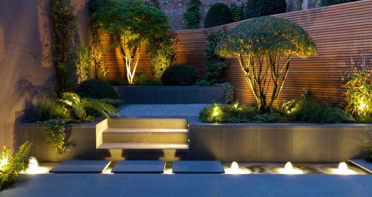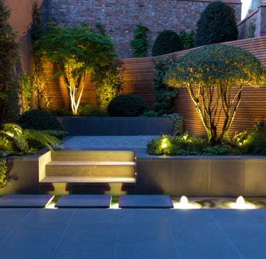 derinamės prie šių aukščių), tada įrengiame laistymo sistemą (jeigu apšvietimo šiai dienai nenorite, patarime į tranšėjas iš karto pakloti laidą, kurio dėka bet kada lengvai galima pajungti šviestuvus). Kitas etapas - augalų kompozicijų atskyrimas nuo vejos, augalų sodinimas, vėjos sėjimas ir belieka paskutinis etapas - mėgavimasis savo kiemu...