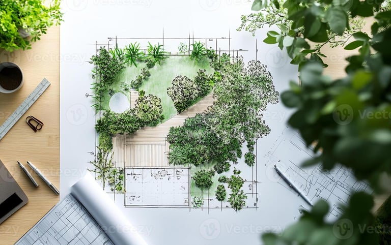 ✳ Ir pagaliau, tik šiame etape, prieiname prie sąmatos, augalų sodinimo planų, augalų aprašymo ir priežiūros rekomendacijų pateikimo, takų, apšvietimo, laistymo sistemų planų.